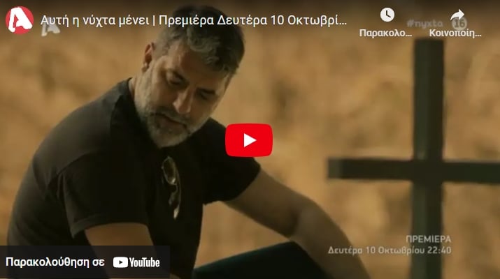 «Αυτή η νύχτα μένει», η νέα σειρά του Alpha, κάνει πρεμιέρα τη Δευτέρα 10 Οκτωβρίου στις 22:40.
