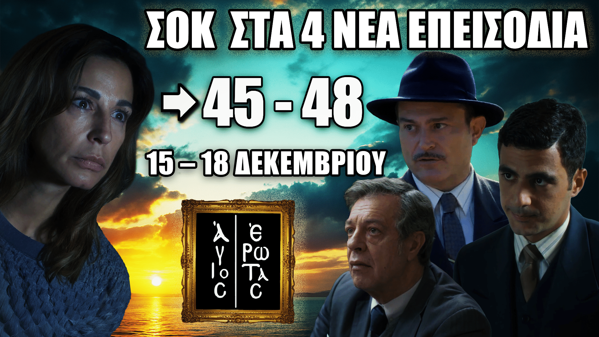 Τα επεισόδια 45–48 της σειράς “Άγιος Έρωτας” έρχονται με νέες αποκαλύψεις και ένταση. Δείτε όλα όσα θα συμβούν από 15 έως 18 Δεκεμβρίου.