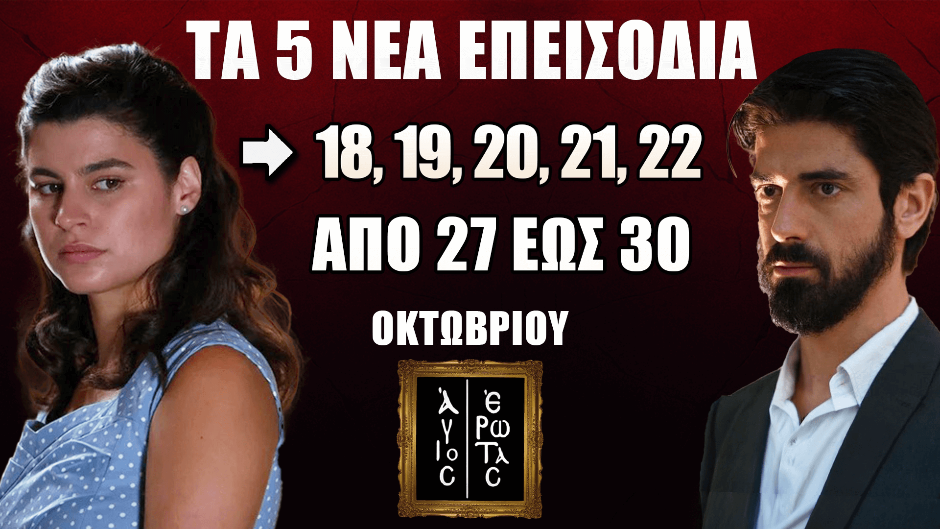 🔴 Στα νέα επεισόδια 18-22 της σειράς Άγιος Έρωτας, οι ήρωες έρχονται αντιμέτωποι με μυστικά που θα ανατρέψουν τις ζωές τους. 🔴