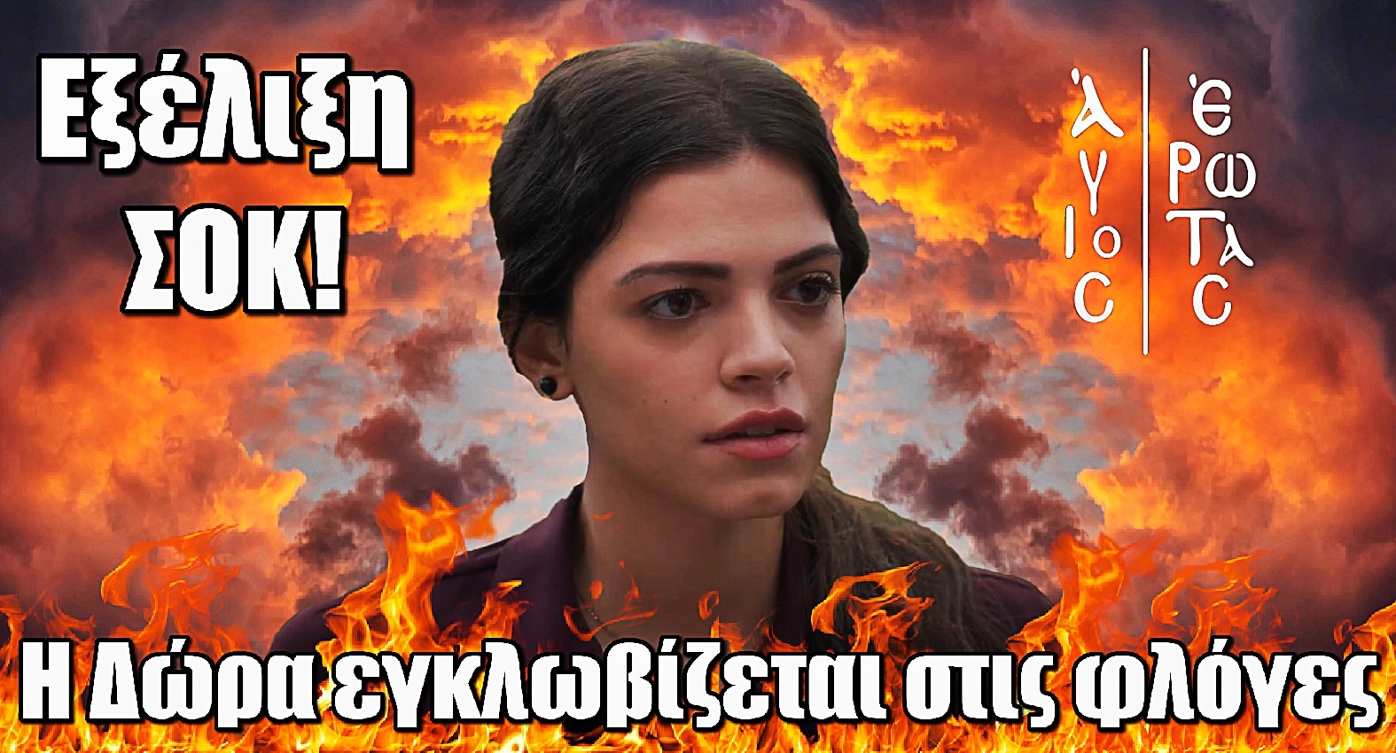 Στα επόμενα επεισόδια του «Άγιου Έρωτα», οι κραυγές σπάνε τη νύχτα, καθώς η Δώρα παγιδεύεται μέσα στη φλεγόμενη κόλαση. Ο καπνός πνίγει κάθε ανάσα και οι φλόγες καταπίνουν το σπίτι με μανία. Προσπαθεί να βρει διέξοδο, μα η φωτιά θεριεύει γύρω της, μετατρέποντας κάθε δωμάτιο σε παγίδα.