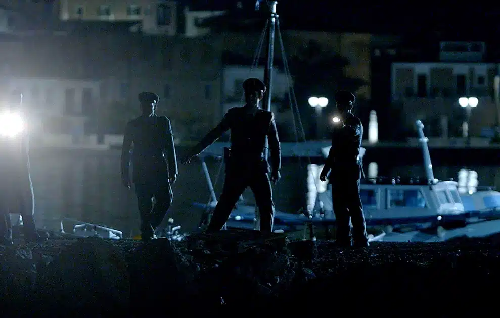 Στη δύσκολη αλλά και συναρπαστική σκηνή πήραν μέρος πέντε σκάφη, ενώ απαιτήθηκε ειδικός τεχνολογικός εξοπλισμός και drone, αλλά και απόλυτος συντονισμός όλων των συντελεστών από ξηρά και θάλασσα, καθώς όλη η δράση γυρίστηκε εν πλω κατά τη διάρκεια της νύχτας.