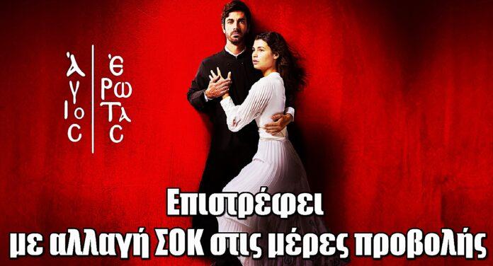 Μια σημαντική αλλαγή πρόκειται να ταράξει τα δεδομένα της επιτυχημένης σειράς του ALPHA, Άγιος Έρωτας. Η αλλαγή αφορά τις ημέρες προβολής, κάτι που θα ενθουσιάσει τους φανατικούς τηλεθεατές, καθώς οι εξελίξεις της σειράς έχουν πλέον γίνει το επίκεντρο του ενδιαφέροντος.