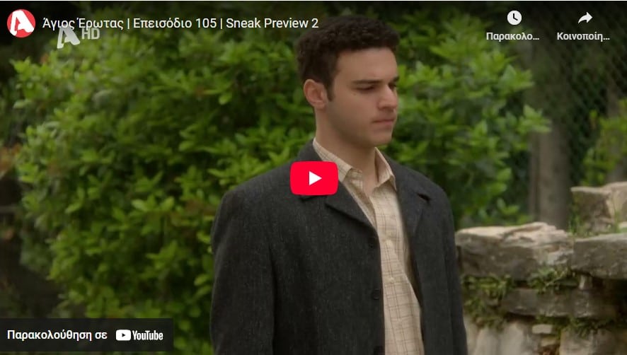 Στο αποψινό επεισόδιο της σειράς «Άγιος Έρωτας» του Alpha, η Χλόη, θέλοντας να στηρίξει τον Αργύρη πριν αναχωρήσει για το Μαύρο Λιθάρι, του παραδίδει μια επιστολή προς την Καλλιόπη, υπογεγραμμένη με το όνομα της Θάλειας Μαρκοπούλου.