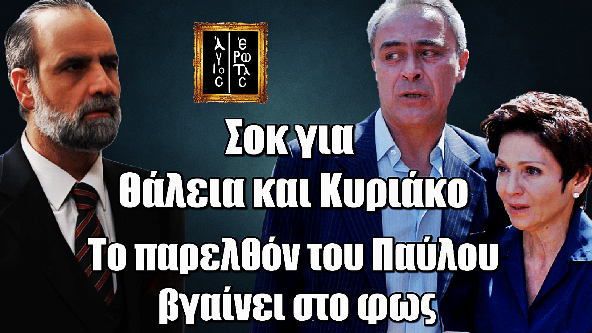 Στον «Άγιο Έρωτα» οι εξελίξεις κορυφώνονται, καθώς το σκοτεινό παρελθόν του Παύλου αποκαλύπτεται και παρασύρει τη Θάλεια και τον Κυριάκο σε έναν χείμαρρο αποκαλύψεων.