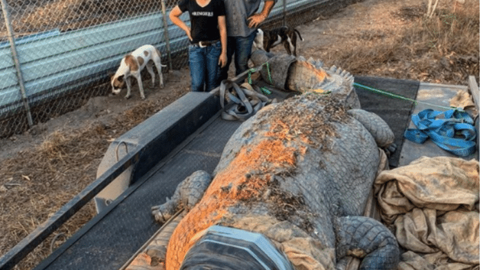 Ένας τεράστιος κροκόδειλος έπεσε στα «δίχτυα» Αυστραλού «Κροκοδειλάκια» που ακούει στο όνομα, Ματ Ράιτ. Ο κροκόδειλος που είχε φτάσει σε μήκος τα πέντε μέτρα, τρεφόταν με τις αγελάδες μιας φάρμας, σύμφωνα με ρεπορτάζ από διεθνή μέσα.