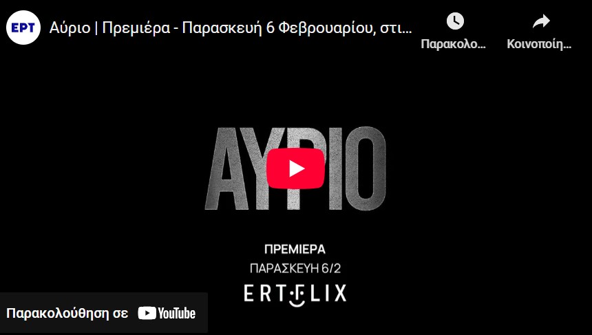 Το «Αύριο», η νέα δραματική σειρά με στοιχεία περιπέτειας 8 επεισοδίων, που φέρει την υπογραφή του βραβευμένου σκηνοθέτη και δημιουργού Γιώργου Γκικαπέππα, κάνει πρεμιέρα απόψε, Παρασκευή 6 Φεβρουαρίου 2026, στις 21:00, στο νέο ERTFLIX με τα πρώτα τέσσερα επεισόδια.