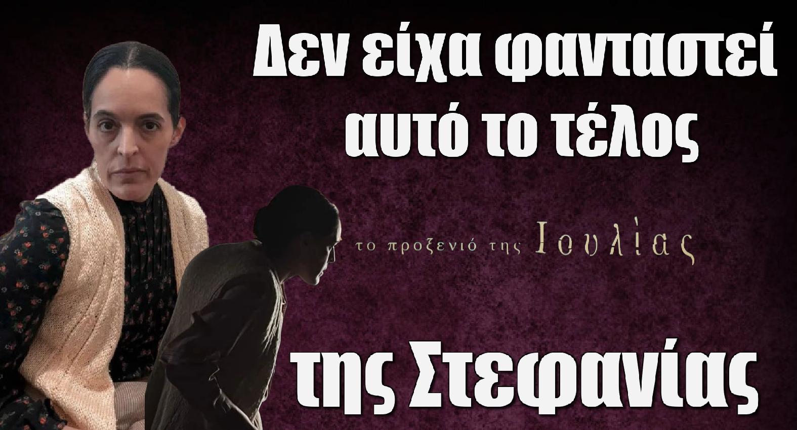 Δεν είχα φανταστεί αυτό το φινάλε της Στεφανίας και εξεπλάγην τρομερά ευχάριστα. Είναι νομίζω το πιο σωστό που θα μπορούσε να επιλεχθεί βάσει σεναρίου, είναι μία πολύ ωραία ολοκλήρωση του χαρακτήρα της. Προσωπική μου άποψη.