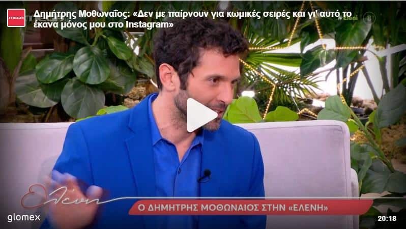 Καλεσμένος στην εκπομπή Ελένη ήταν ο Δημήτρης Μοθωναίος και αναφέρθηκε στην απόφασή του να ασχοληθεί με την υποκριτική αλλά και στη συμμετοχή του στην «Παραλία» της ΕΡΤ.