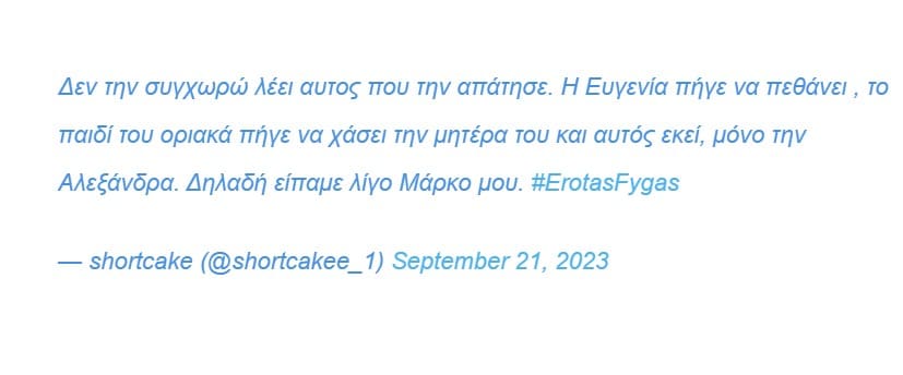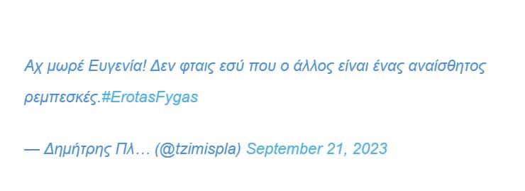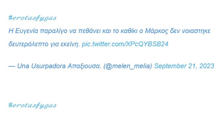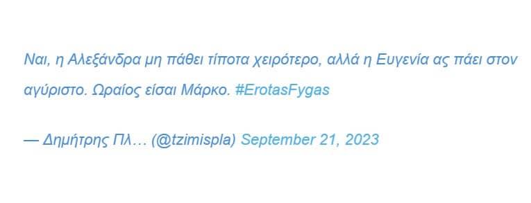 Έτσι οι χρήστες του Τwitter μετά τη σημερινή στάση του Μάρκου καταδίκασαν για τα καλά τη συμπεριφορά του και έδωσαν τα εύσημα στην Αρετή Πασχάλη που υποδύεται την Ευγενία.