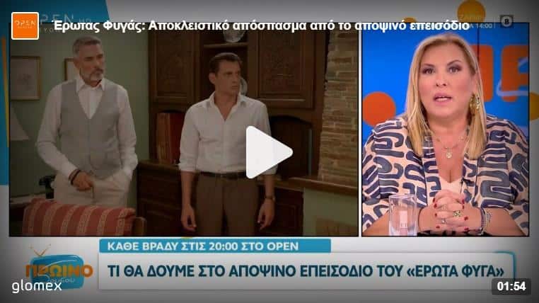 Ένα αποκλειστικό απόσπασμα από το αποψινό 23/10 επεισόδιο του Έρωτα Φυγά προβλήθηκε νωρίτερα στην εκπομπή Πρωινό ΣουΣού του Open.