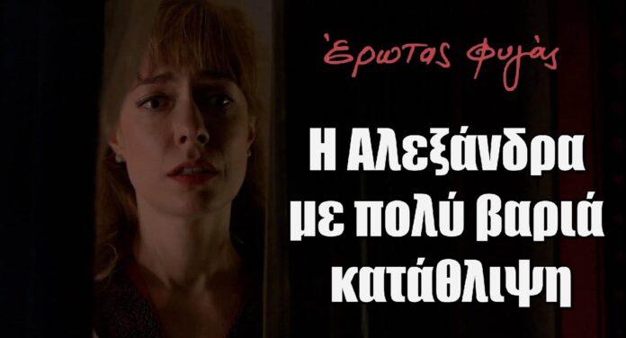 Με νέες κι ανατρεπτικές εξελίξεις που θα μας καθηλώσουν, έρχονται τα επόμενα επεισόδια στον Έρωτα Φυγά, αφού θα δούμε την Αλεξάνδρα να πέφτει σε βαριά κατάθλιψη.
