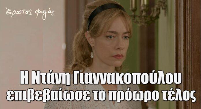 Σύμφωνα με αποκλειστικές πληροφορίες του youfly.com, δυστυχώς επιβεβαιώνεται το πρόωρο τέλος του Έρωτα Φυγά στο OPEN και μία από τις πρωταγωνίστριες, η Ντάνη Γιαννακοπούλου το επιβεβαίωσε μετά λύπης στο προσωπικό της λογαριασμό στο Instagram.
