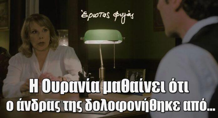 Καταιγιστικές οι εξελίξεις στα επόμενα επεισόδια του Έρωτα Φυγά με την Ουρανία να μαθαίνει όλη την αλήθεια για την δολοφονία του άντρα της και να σοκάρεται.