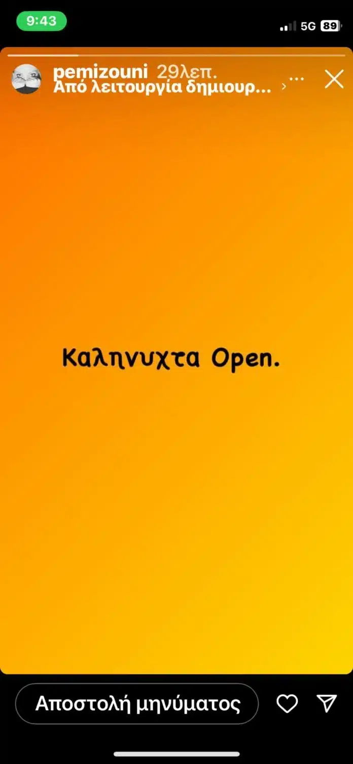 Συγκεκριμένα, η ηθοποιός που αγαπιέται πολύ μέσα από τον ρόλο της Μαργέτας, ανέβασε ένα στόρι στον προσωπικό της λογαριασμό στο Instagram, αμέσως μετά το τέλος του σημερινού επεισοδίου, γράφοντας: “Καληνύχτα OPEN”. Ένα σχόλιο γεμάτο νόημα και ουσία. Ο Έρωτας Φυγάς αγαπήθηκε πολύ, αλλά ευτυχώς θα τον απολαμβάνουμε πλέον σε άλλο κανάλι.