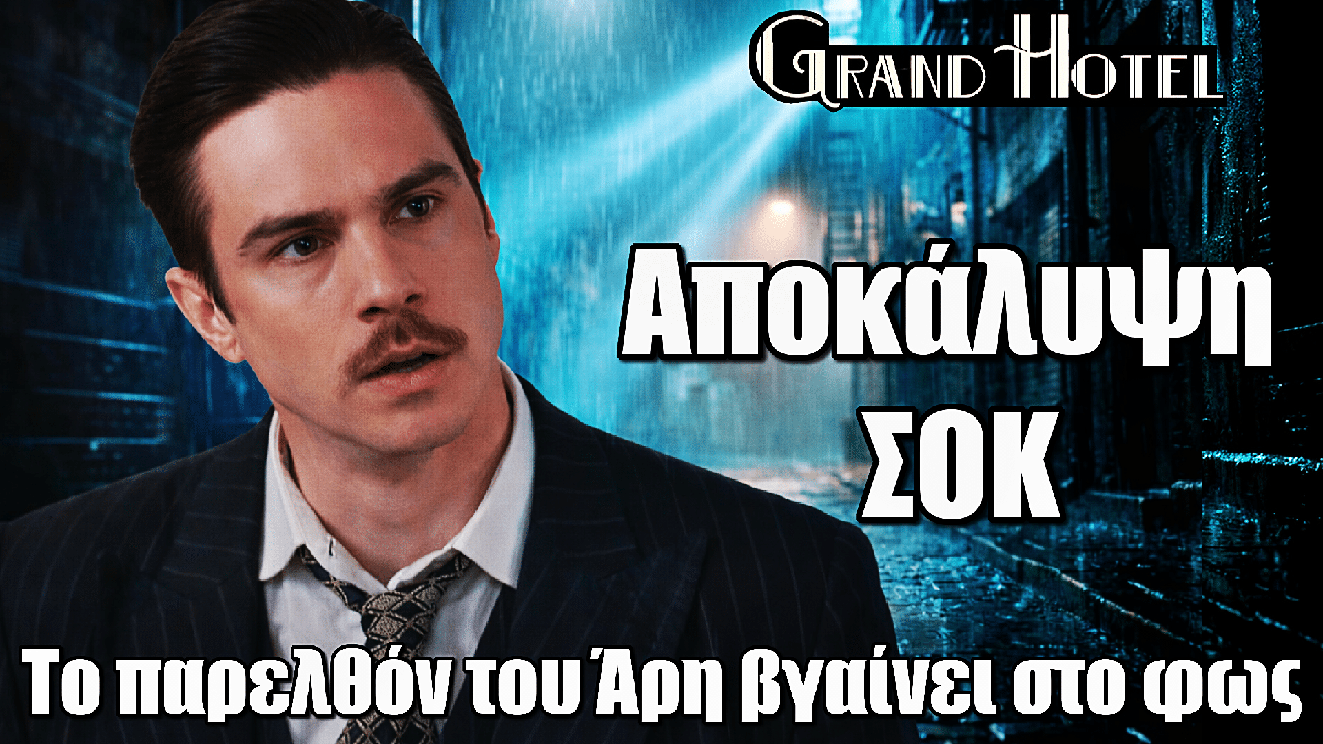 Οι εξελίξεις στα νέα επεισόδια του «Grand Hotel», φέρνουν τον Άρη στο πιο κρίσιμο σταυροδρόμι της ζωής του. Μυστικά που για καιρό έμεναν καλά κρυμμένα αρχίζουν να αποκαλύπτονται, παλιές πληγές ανοίγουν ξανά και οι ισορροπίες γύρω του διαλύονται. Όσα προσπάθησε να κρατήσει στο σκοτάδι επιστρέφουν τώρα με ορμή, φέρνοντάς τον αντιμέτωπο τόσο με τους ανθρώπους που τον εμπιστεύτηκαν όσο και με το ίδιο του το παρελθόν.