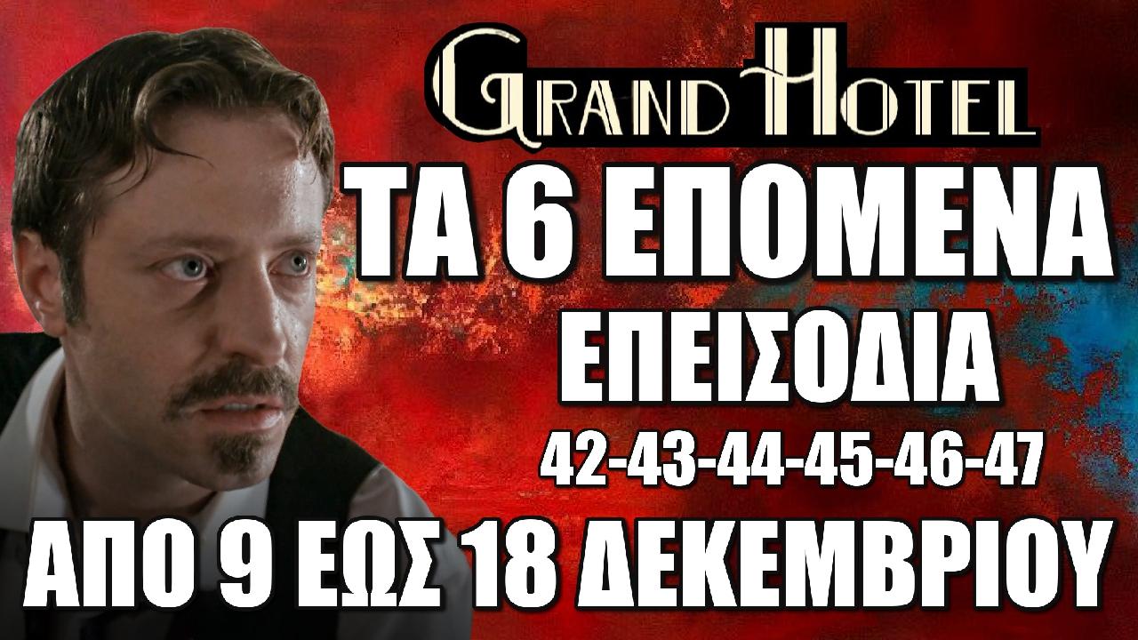 Τι θα δούμε στα 6 επόμενα επεισόδια 42-43-44-45-46-47 του Grand Hotel από Δευτέρα 9 έως Τετάρτη 18 Δεκεμβρίου όλες οι εξελίξεις αναλυτική περίληψη…