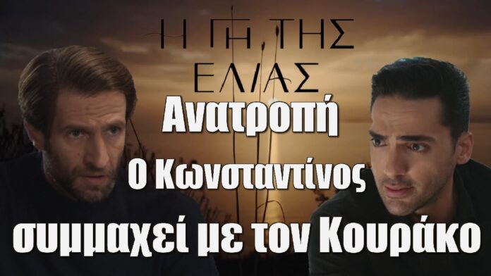 Ο Κωνσταντίνος καταφέρνει και ξεγλιστράει από το παγιδευμένο σπίτι των Βρεττάκων, στην σειρά Η Γη της Ελιάς, και σπεύδει στην πλευρά των αστυνομικών.