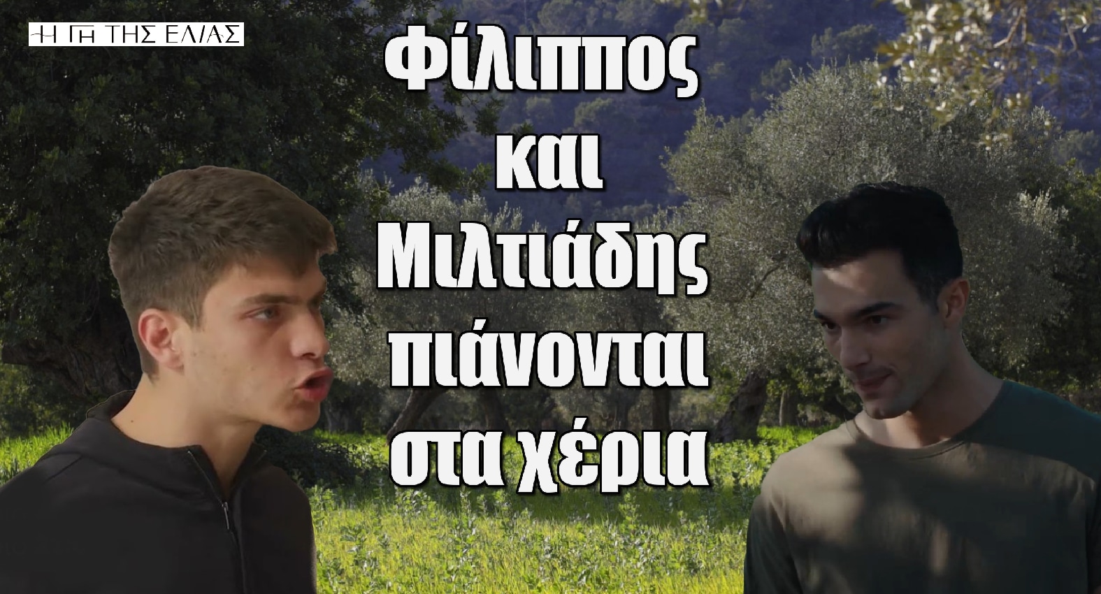 Ο Φίλιππος παρατηρεί πως ο Μιλτιάδης είναι πολύ κοντά στη γυναίκα του και τρελαίνεται, στην γη της ελιάς. Οι ζήλιες φουντώνουν ξανά στο ζευγάρι. Ο Παρασκευάς συνεχίζει να βάζει λάδι στη φωτιά.