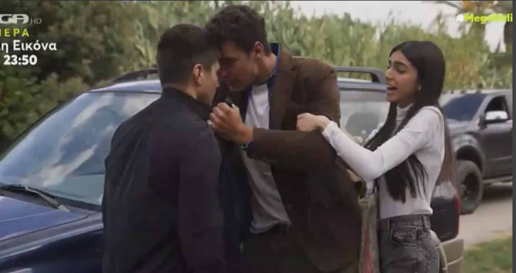 Ο Στέφανος βγαίνει έξαλλος από το αυτοκίνητο και αμέσως ορμάει στον Φίλιππο. «Τι θες από την αδερφή μου ρε; Φύγε! Άκουσες τι είπα; Φύγε», του φωνάζει. Ο Φίλιππος δεν βγάζει ούτε λέξη και κάνει αυτό που του είπε ο Στέφανος, πριν ανάψουν τα αίματα παραπάνω στη Γη της Ελιάς.