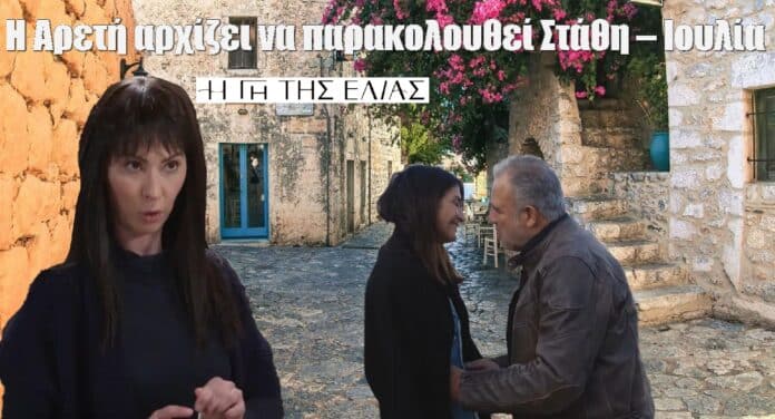 Μόλις μάθει η Αρετή για τον επικείμενο γάμο του Στάθη και της Ιουλίας αναστατώνεται, όπως θα δούμε στη «Γη της Ελιάς». Η πρώην γυναίκα του Καπερνάρου δεν μπορεί να διαχειριστεί το γεγονός ότι ο πρώην άντρας της θα παντρευτεί τελικά αυτή τη γυναίκα.