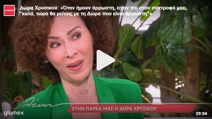 Καλεσμένη στην Ελένη Μενεγάκη, βρέθηκε το μεσημέρι της Δευτέρας, η αγαπημένη ηθοποιός, Δώρα Χρυσικού, η οποία μεταξύ άλλων μίλησε για τον ρόλο της Αρετής στην σειρά, Η Γη της Ελιάς αλλά και την κατάληξη της σχέσης της με τον Ανδρέα. Όσα αποκάλυψε!