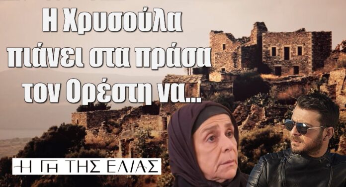 Ο Ορέστης, με το που φτάνει στην γη της ελιάς, πέφτει πάνω στην μεγαλύτερη κουτσομπόλα, την Χρυσούλα.