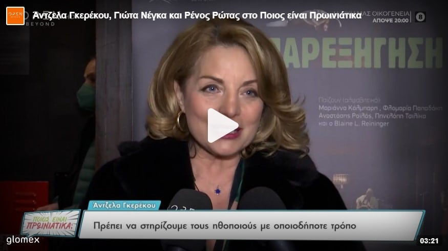 «Χαίρομαι τόσο πολύ που τα θέατρά μας γεμίζουν, μικρά ή μεγάλα. Είναι τόσο σημαντικό μετά τη δύσκολη περίοδο που περάσαμε. Εύχομαι να πάνε κι όλα καλά – και θα πάνε – με αυτό το θέμα με τους ηθοποιούς-καλλιτέχνες. Πρέπει να στηρίξουμε τους ανθρώπους του θεάτρου και της Τέχνης με όλες μας τις δυνάμεις», ανέφερε σε δηλώσεις της στις κάμερες η Άντζελα Γκερέκου.