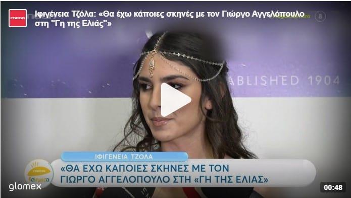 Πιο αναλυτικά η Ιφινέγεια Τζόλα ανέφερε: «Θα συνεχίσω και του χρόνου στην Γη της Ελιάς. Ακόμα δεν έχω γνωρίσει στην σειρά τον Γιώργο, έχουμε γνωριστεί σε προσωπικό επίπεδο. Όσον αφορά την σειρά θα έχουμε κάποιες σκηνές μαζί αλλά όχι τόσο με ως Βασιλική αλλά σε ένα γενικότερο πλαίσιο, ως γυμναστής!»