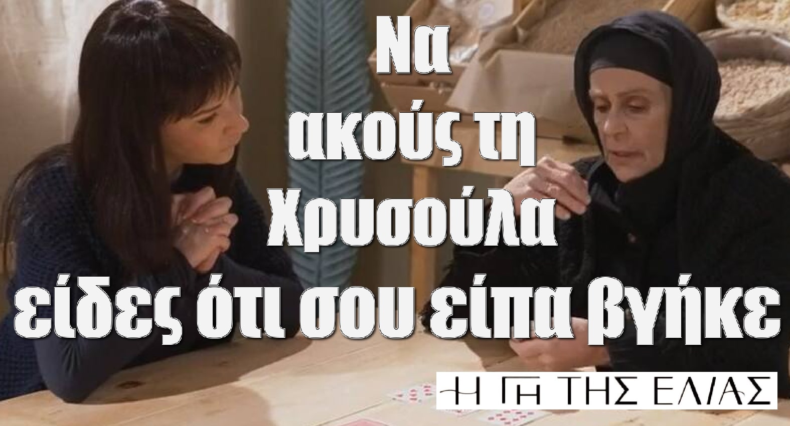 Η πονηρή χαρτορίχτρα παινεύεται για τις μαντικές της ικανότητες τονίζοντας πόσο σωστά είχε προβλέψει την αλλαγή αυτή στη ζωή της Αρετής. «Να ακούς τη Χρυσούλα. Είδες ότι σου είπα βγήκε», λέει με περηφάνια η Χρυσούλα απευθυνόμενη στην Αρετή που είναι μέσα στη καλή χαρά.