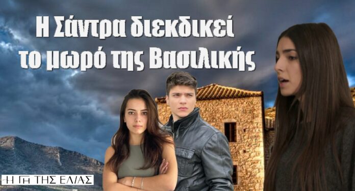Μία μέρα, η Βασιλική βλέπει από μακριά τον Φίλιππο και την Σάντρα να παίζουν με την μικρή Στέλλα. Όταν η Σάντρα αγκαλιάζει το μωρό σα να είναι δικό της, η Βασιλική χάνει το μυαλό της, στην γη της ελιάς.
