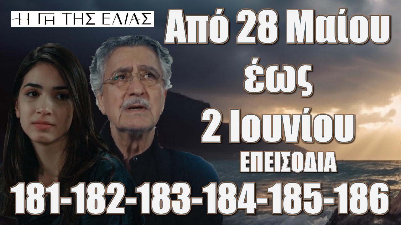 Όλα όσα θα παρακολουθήσουμε στη σειρά του Mega, Η Γη της Ελιάς, στα επόμενα επεισόδια 181-182-183-184-185-186 από Κυριακή 28 Μαΐου έως Παρασκευή 2 Ιουνίου