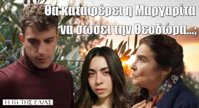 Οι εξελίξεις συνεχίζονται στη σειρά του MEGA «Η Γη της Ελιάς» και η αγωνία κορυφώνεται, με την Μαργαρίτα να προσπαθεί να σώσει την Θεοδώρα.