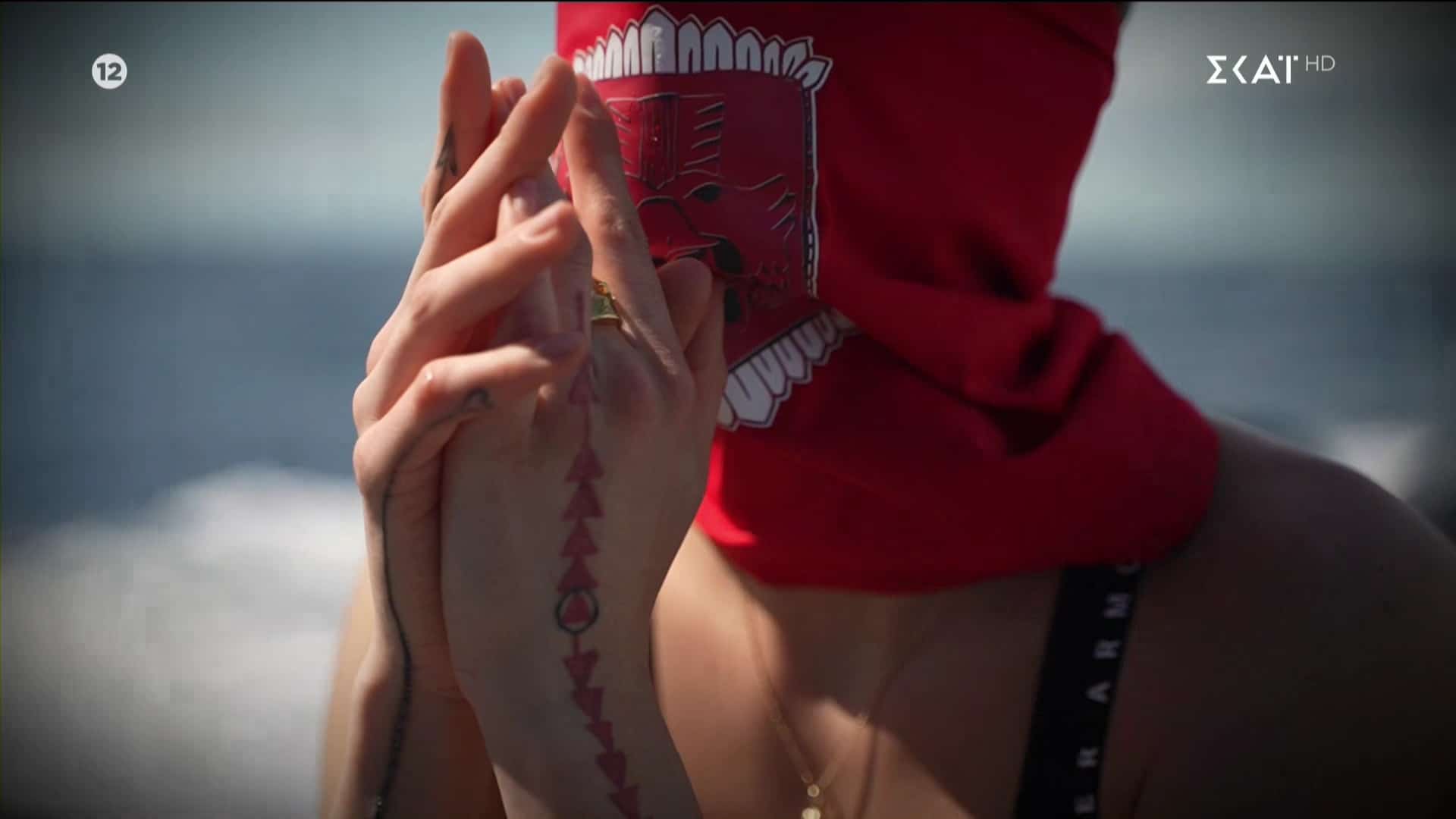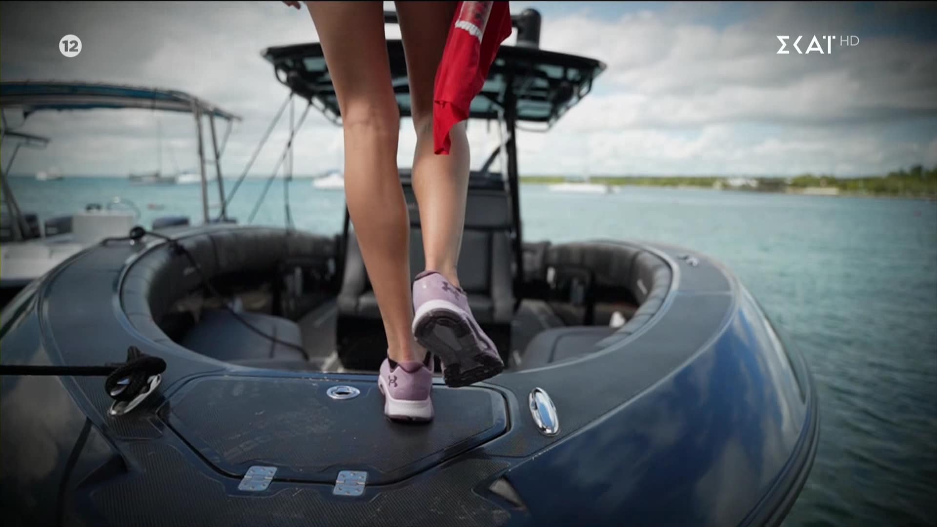 Εκεί που καθόντουσαν οι διάσημοι στην παραλία εμφανίζεται ένα σκάφος με τέσσερις εξωλέμβιες μηχανές 12 μέτρων το οποίο είχε πάνω μία παίκτρια η οποία είχε μαντήλι στο πρόσωπο για να μην είναι ευδιάκριτη!