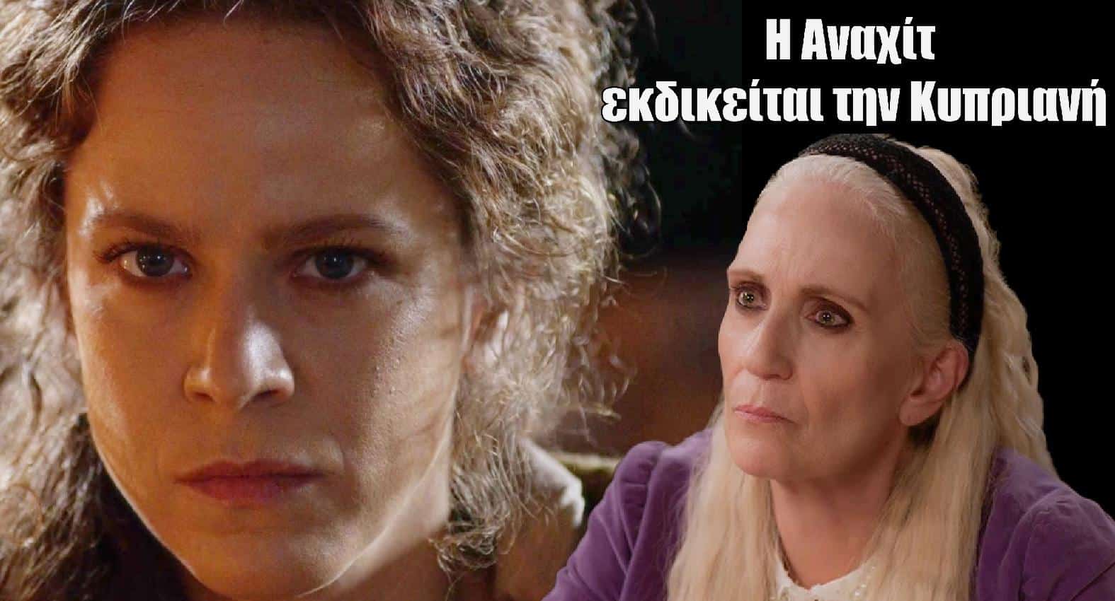 Σύμφωνα με τα όσα διαβάζουμε στο 7 Μέρες TV, η κουβέντα μαζί της δεν φτάνει πολύ μακριά. Θα μάθει από τη Κυπριανή ότι και η Λασκαραίοι έχουν ανάμειξη στον θάνατο της μάνας της. Αλλά εκεί που μιλάνε, το πνεύμα της Αναχίτ επιστρέφει και απειλεί να πάρει ξανά τον έλεγχο ,για να τιμωρήσει την γυναίκα που την έστειλε στην πυρά, δηλαδή την Κυπριανή. Η Αναχίτ για ακόμη μια φορά, ζητάει εκδίκηση.