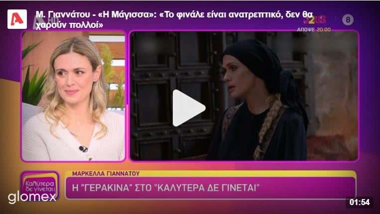 Η Μαρκέλλα Γιαννάτου βρέθηκε καλεσμένη στο “Καλύτερα Δε Γίνεται” και μίλησε για τον ρόλο της Γερακίνας και το τέλος στη Μάγισσα.