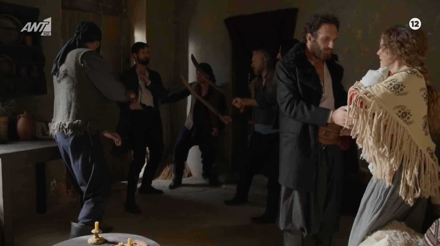 Η Θεοφανώ ξεσπάει σε κλάματα και ζητάει από τον Μάρκο, να πάρει τους άντρες του και να βγουν έξω. “Δεν μπορείς να μας πάρεις κοντά σου με τον ζόρι”. Ο Μάρκος απαιτεί να φύγουν για τον Πύργο.
