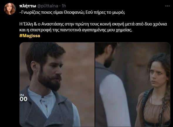 Η Έλλη & ο Αναστάσης στην πρώτη τους κοινή σκηνή μετά από δυο χρόνια και η επιστροφή της παντοτινά αγαπημένης μου χημείας. #Magissa», γράφει κάποιος στο Twitter.