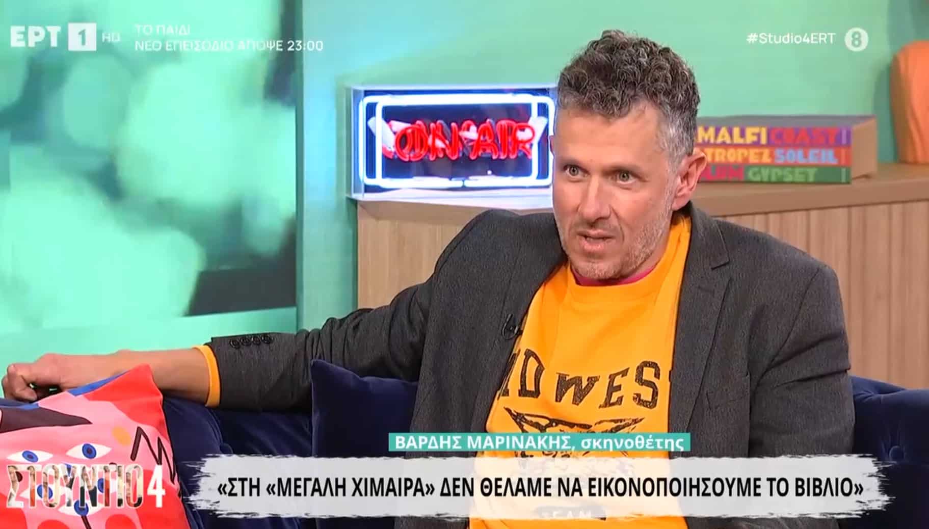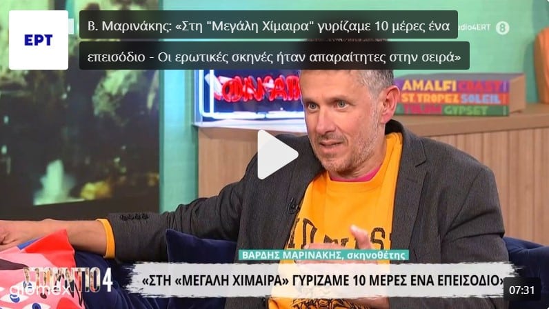 Ο Βαρδής Μαρινάκης ήταν καλεσμένος στο «Στούντιο 4» και μίλησε για το μεγάλο στοίχημα της «Μεγάλης Χίμαιρας», αλλά και για τη συζήτηση που έχει ανοίξει γύρω από τις ερωτικές σκηνές της σειράς.