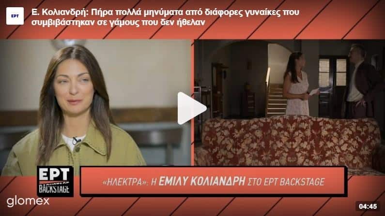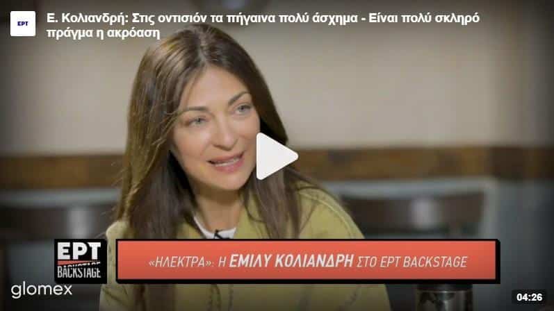 Καλεσμένη στην τελευταία εκπομπή του ERT Backstage βρέθηκε η Έμιλυ Κολιανδρή και μιλά για τις δύσκολες συνεργασίες της, την Ηλέκτρα, αλλά και την επανάσταση που έκανε η ίδια σε μικρή ηλικία.