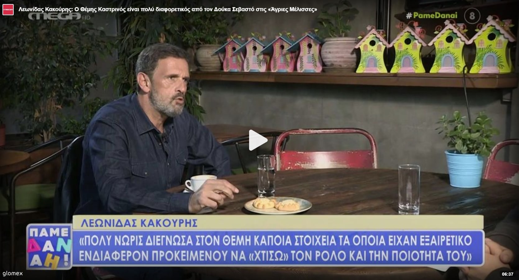 «Πολύ νωρίς διέγνωσα στον Θέμη κάποια στοιχεία, τα οποία είχαν εξαιρετικό ενδιαφέρον προκειμένου να «χτίσω» τον ρόλο και την ποιότητά του. Ο Θέμης Καστρινός είναι πολύ διαφορετικός από τον Δούκα Σεβαστό στις «Άγριες Μέλισσες». Είναι ένας φαινομενικά ανάλαφρος άνθρωπος, όμως έχει βαρύ και ειδικό βάρος το οποίο δεν το βλέπουμε στην πρώτη εικόνα.