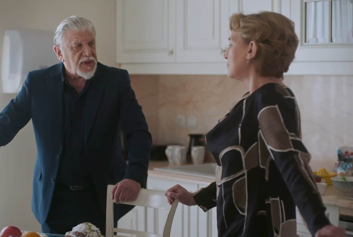 Εκεί ακολουθεί ένας άγριος καβγάς ανάμεσα σε πεθερό και νύφη. «Πήγες να σκοτώσεις τον εγγονό μου. Μην τολμήσεις να με κοροϊδέψεις και να το αρνηθείς. Μου τα είπε όλα ο Μπακύρας. Μυαλό δεν έχεις; Τι νόμιζες, ότι δεν θα το μάθαινα; Μέχρι εκεί έφτασες; Να σκοτώσεις την ερωμένη του άνδρα σου;», της φωνάζει κι εκείνη δικαιολογείται: «Δεν ήθελα να τη σκοτώσω, αλλά να την κάνω να τρομάξει και να χάσει το μωρό».