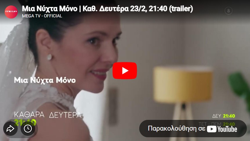 Η σειρά του MEGA «Μια Νύχτα Μόνο» αλλάζει ραντεβού από τη Δευτέρα 23 Φεβρουαρίου. Σύμφωνα με τον νέο προγραμματισμό του σταθμού, θα προβάλλεται πλέον κάθε Δευτέρα, Τετάρτη και Πέμπτη στις 21:40.