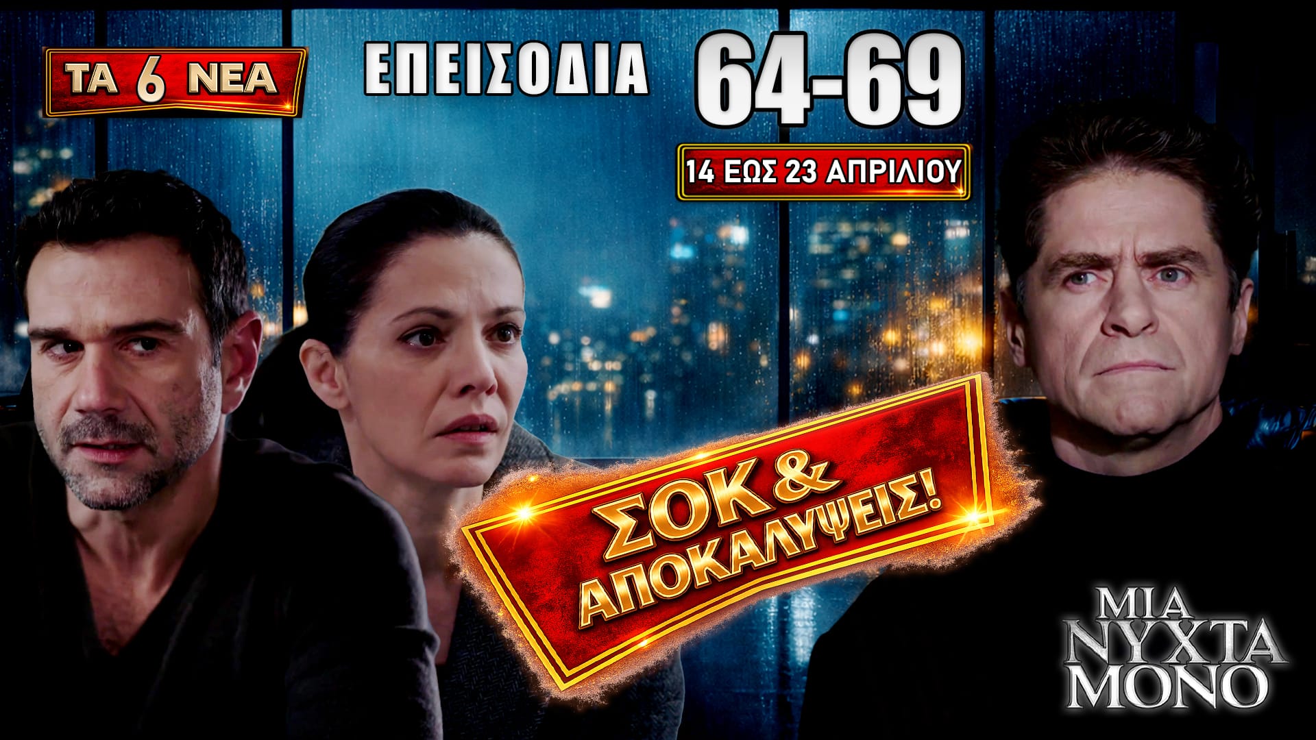 🔴 Μια Νύχτα Μόνο: Δείτε πρώτοι τις πληροφορίες για τα 6 νέα επεισόδια “64, 65, 66, 67, 68, 69″ που θα προβληθούν από Τρίτη14 έως και Πέμπτη 23 Απριλίου