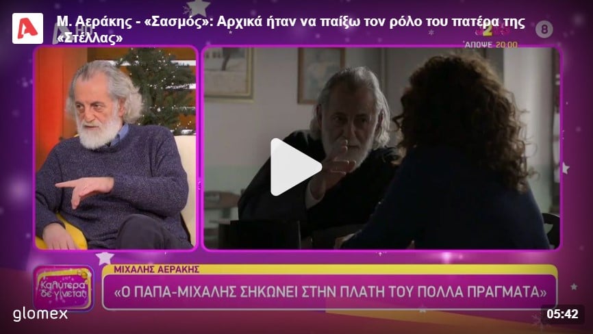 Μία πολύ όμορφη και συγκινητική συνέντευξη έδωσε ο Μιχάλης Αεράκης, ή αλλιώς ο παπά Μιχάλης στη σειρά Σασμός. Ο ηθοποιός μίλησε με την Ναταλία Γερμανού για την επιτυχία της σειράς, για τον ρόλο του, αλλά και για τις βεντέτες που έζησε και ο ίδιος στην Κρήτη, σε μικρή ηλικία.