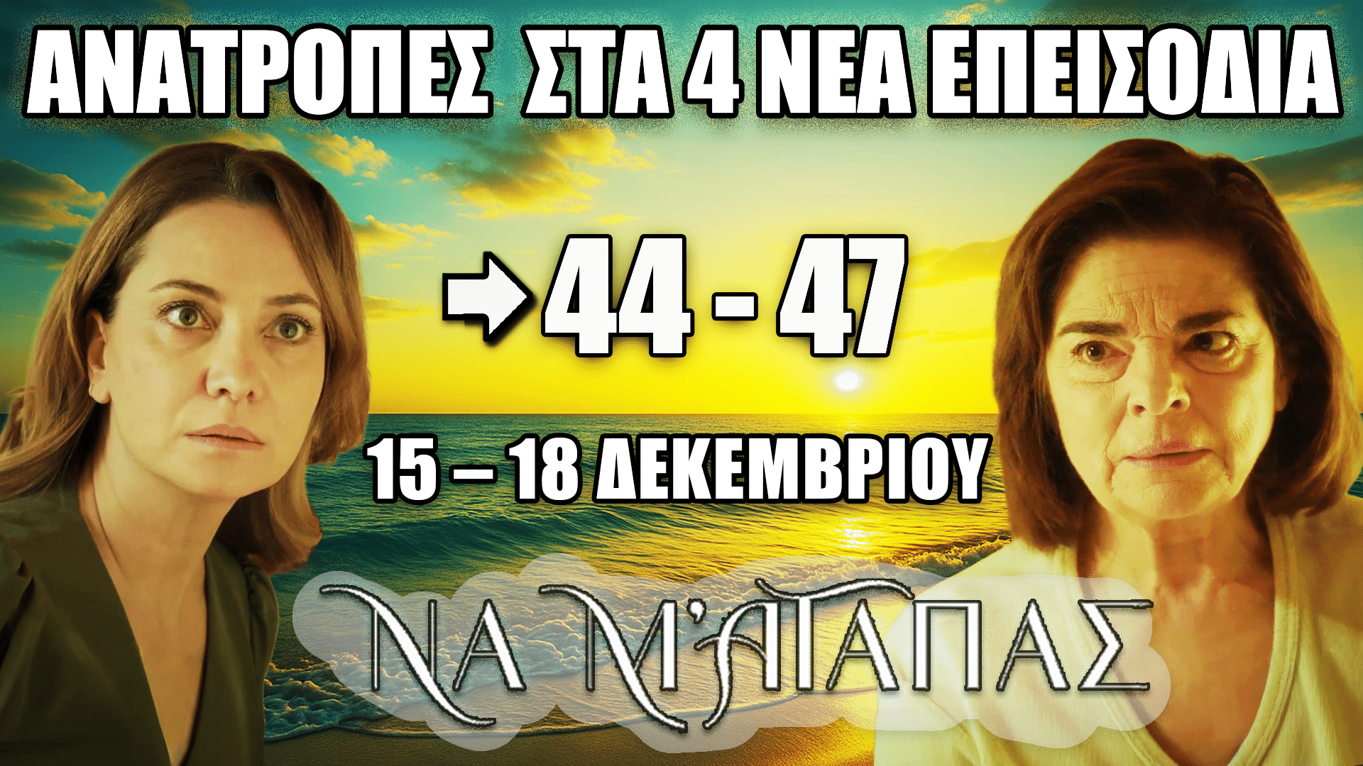 Οι εξελίξεις στα επεισόδια 44–47 της σειράς Να Μ’ Αγαπάς φέρνουν ένταση, συγκρούσεις και ανατροπές από 15 έως 18 Δεκεμβρίου.