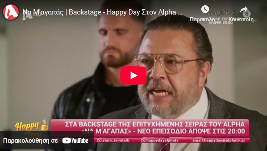 Η κάμερα της εκπομπής «Happy Day» βρέθηκε στα γυρίσματα της επιτυχημένης καθημερινής σειράς του ALPHA «Να μ’ αγαπάς», με τους πρωταγωνιστές να μιλούν για τους ρόλους τους, αλλά και για όσα έρχονται στα επόμενα επεισόδια.