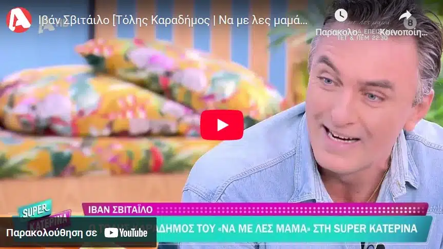 Με ειλικρίνεια και συναίσθημα, ο Ιβάν Σβιτάιλο μίλησε στη «Super Κατερίνα» για τον ρόλο του Τόλη Καραδήμου στο «Να με λες μαμά», τις σκληρές σκηνές που τον δοκίμασαν και το τέλος που θα συγκινήσει τους τηλεθεατές.