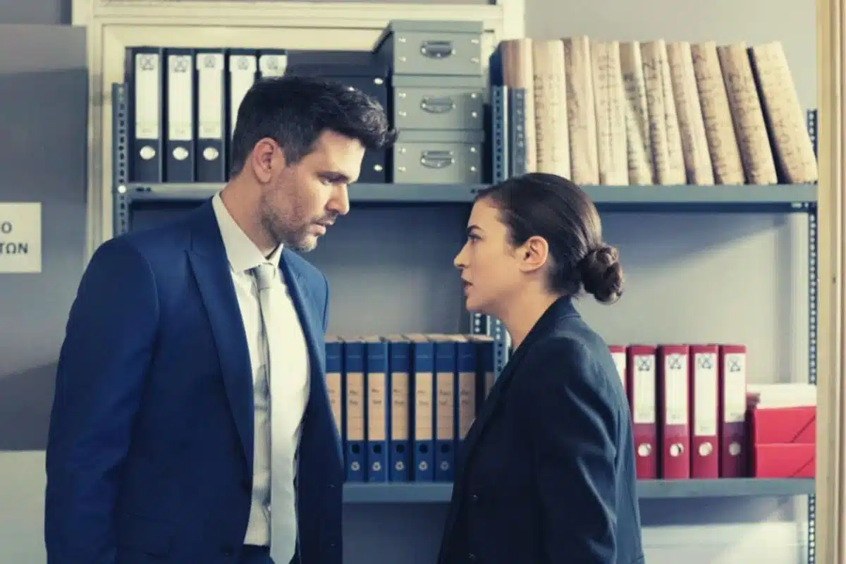Ο εισαγγελέας και η δικηγόρος βρίσκουν τα στοιχεία που θέλουν για να δέσουν την υπόθεση, υπογράφοντας την καταδίκη του Άγγελου.