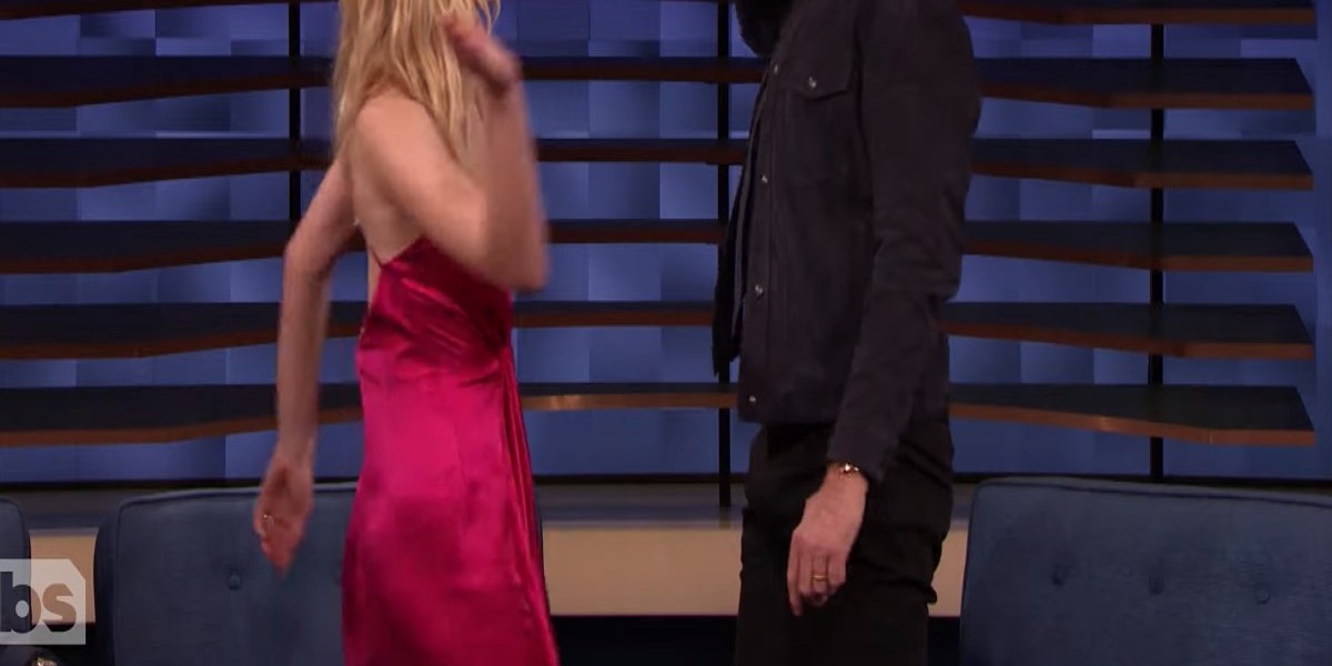 Η όμορφη ηθοποιός μπήκε στο στούντιο, φορώντας ένα σέξι ροζ φόρεμα και στην διάρκεια της κουβέντας, προκάλεσε τον παρουσιαστή να παίξουν ένα παιχνίδι, που έπαιζε η ίδια συχνά με το καστ των X-Men στα γυρίσματα.