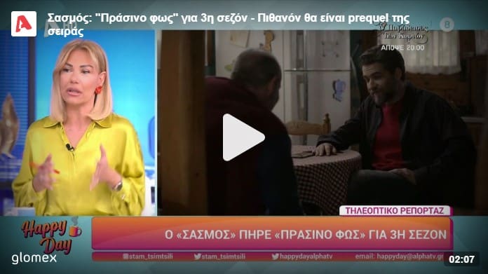Μετά την επιτυχημένη πορεία του στους πίνακες τηλεθέασης και τη δεύτερη τηλεοπτική σεζόν στον ALPHA, ο “Σασμός” ανανεώνει το ραντεβού του με τους τηλεθεατές και την ερχόμενη τηλεοπτική σεζόν.